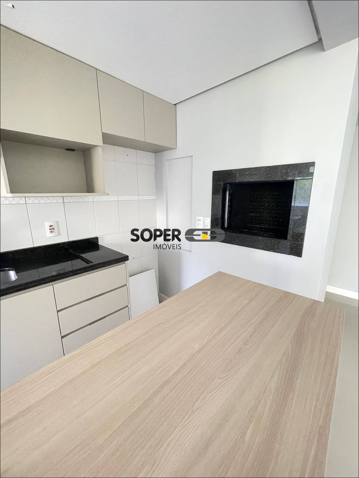 Cozinha estilo americana com churrasqueira,